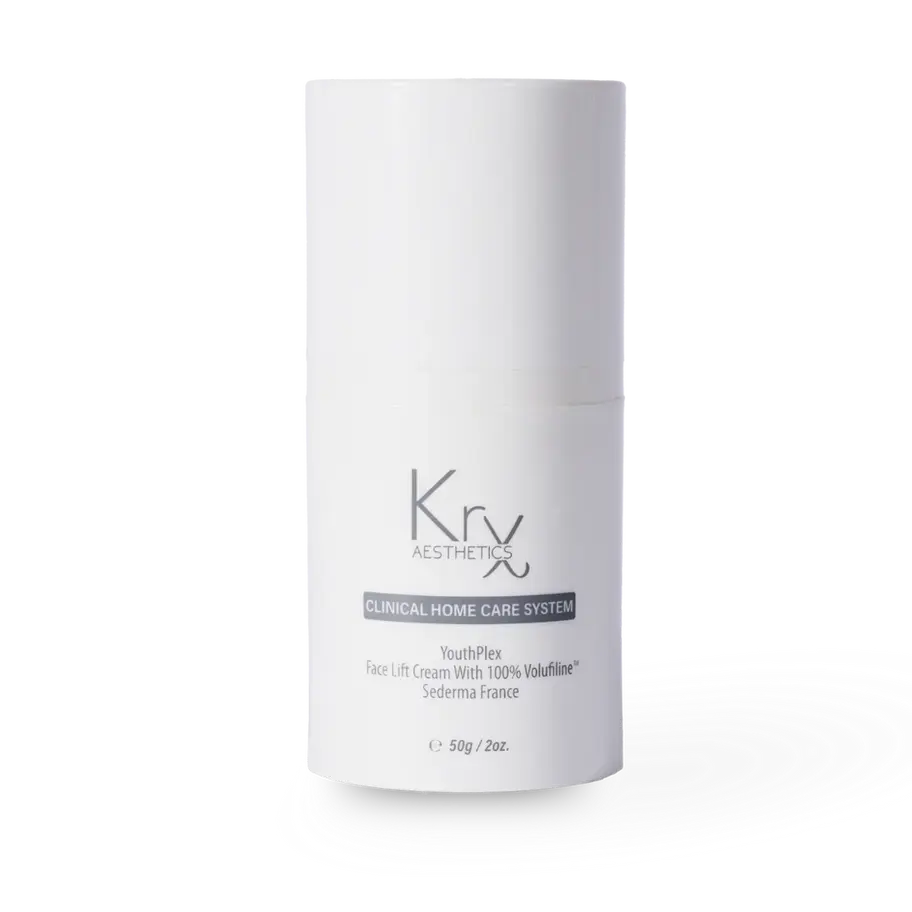 KrX Youthplex Face Lift Cream leverages the power of Volufiline to restore lost volume while hydrating the skin deeply, rebuilding collagen and elastin to aging, sagging skin. Volufiline is a patented ingredient derived from plant sources and a popular ingredient in anti-aging and body contouring products.